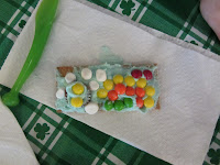 I put all the candy out on the table and told the kids (and a friend) to make a rainbow, clouds and a pot of gold. It was super fun to see what they came up with all on their own. Some children are obvious abstracts or realists right from the start :-) One child is an obvious builder and worked for quite some time